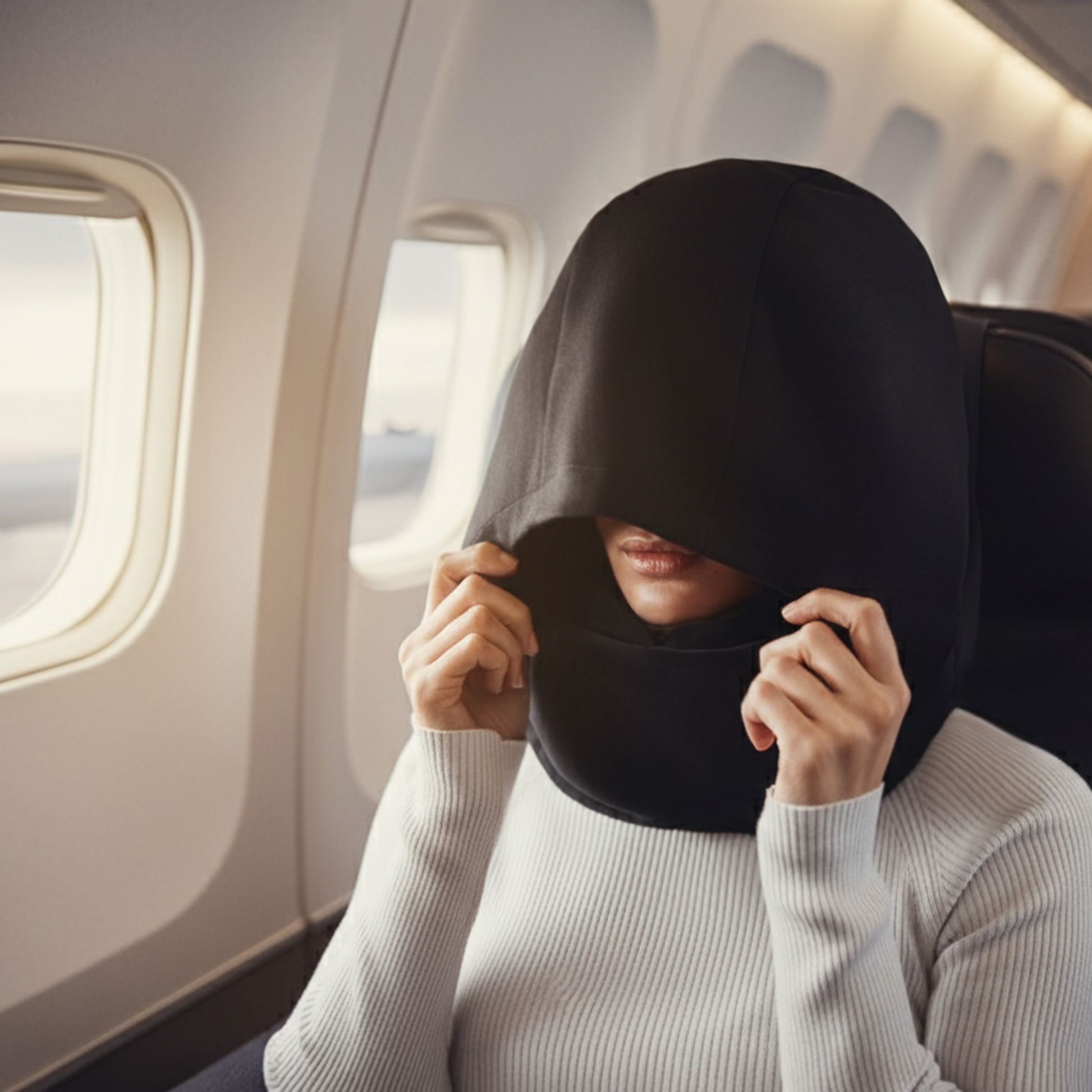 - 寝顔を隠せるフード付き
