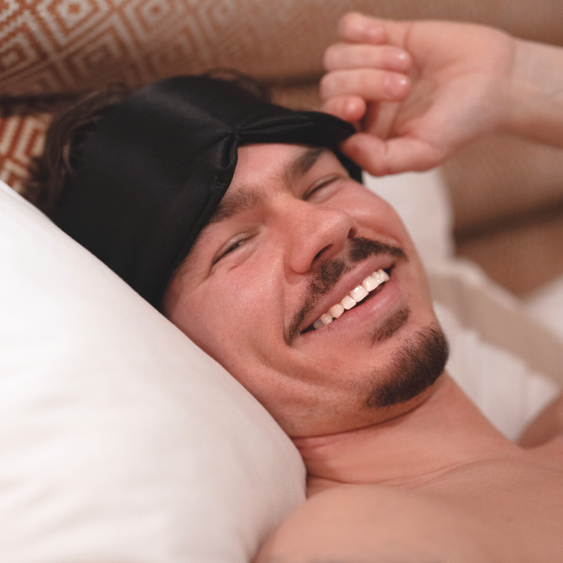 ※耳まで覆う(=耳にゴムをかけない)からこそ、ゴムで耳が痛くならない、寝ている間もアイマスクがズレにくい、髪の毛がゴムに絡まない、など嬉しいポイントがたくさん。